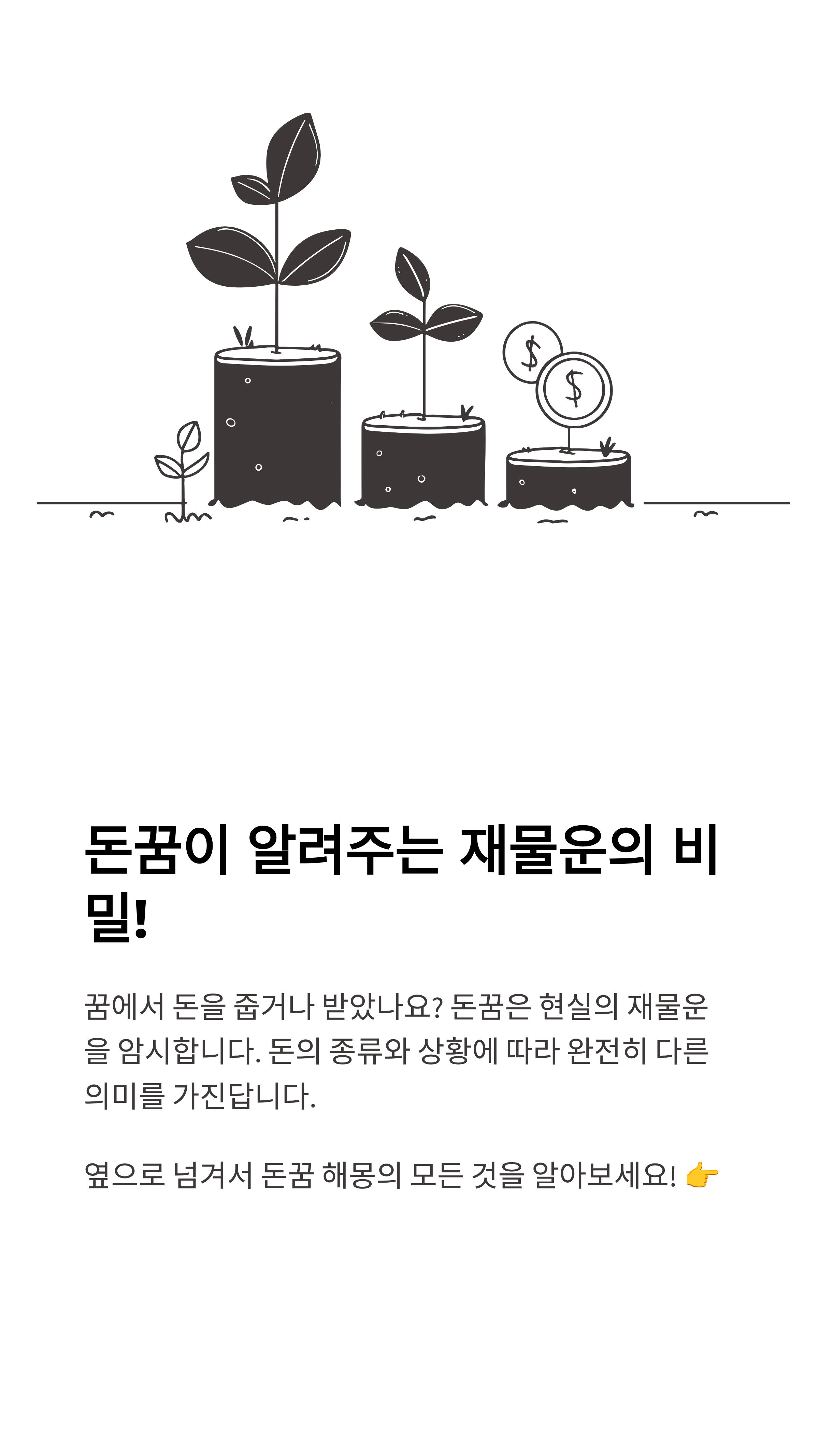 이 글을 통해 여러분이 꾼 돈꿈이 전하는 재물운과 금전운을 정확히 파악하실 수 있을 것입니다.