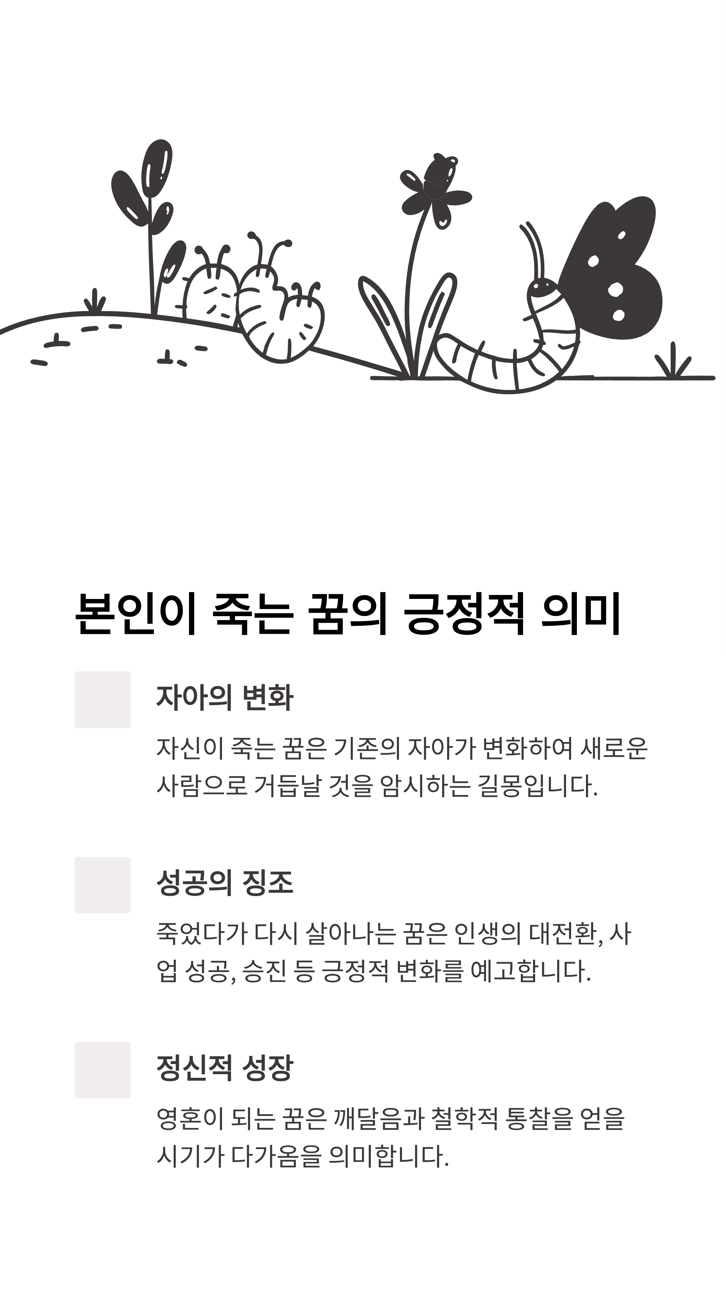 죽음꿈은 실제 죽음과는 관련이 없으며, 대부분 긍정적인 변화와 성장을 의미합니다.
